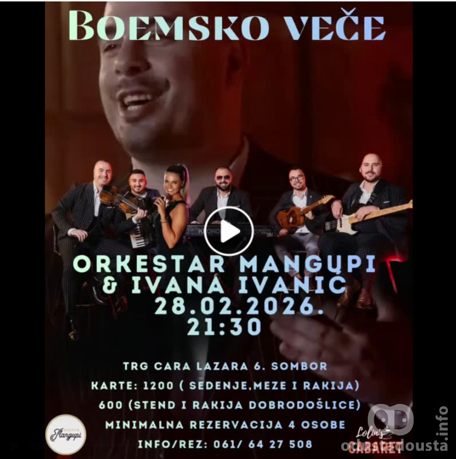 28 Februar 2026 u 21:30h    Sombor - Trg Cara Lazara 6 Sombor