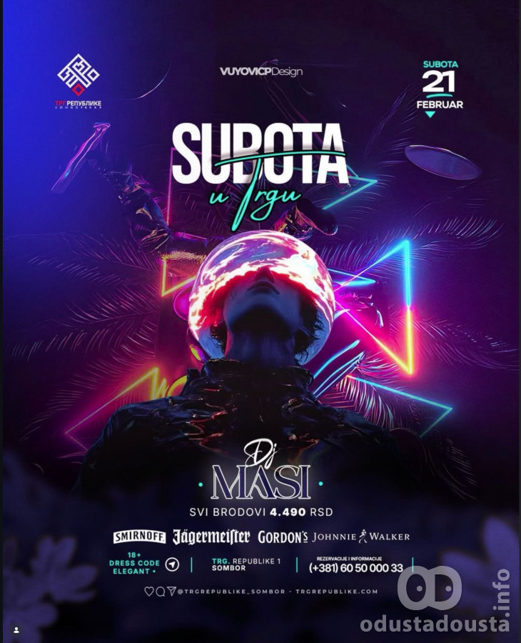 Ove subote, 21. februara, Trgu Republike Lounge & Bar u Somboru postaje centar najbolje zabave u regionu. Uz slogan "Okupljanje na istom mestu, atmosfera na maksimumu", posetioce očekuje nezaboravna noć uz nastup popularnog DJ Masija.