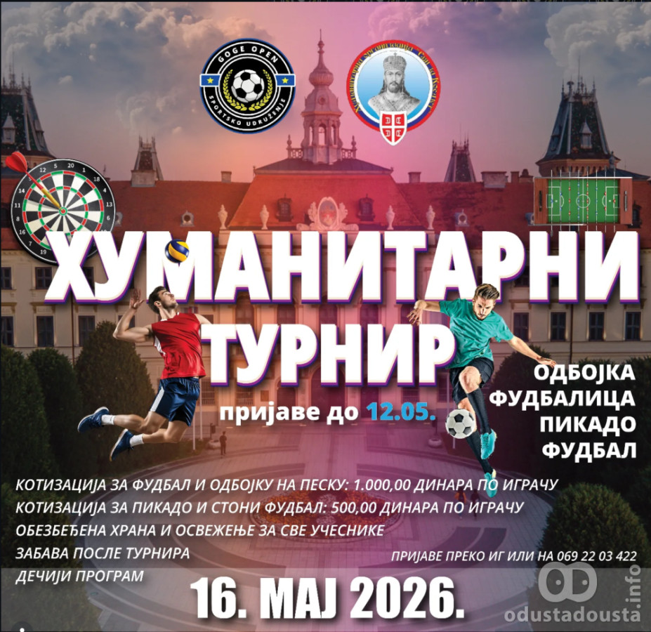 Sombor će 16. maja 2026. godine biti centar humanosti i sportskog duha. U organizaciji sportskog udruženja "Goge Open" i humanitarne organizacije "Svi za Kosmet", biće održan veliki Humanitarni turnir koji obuhvata više sportskih disciplina i bogat prateći program.