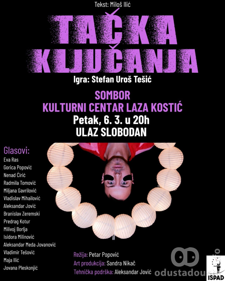 Kulturni centar „Laza Kostić“ Sombor vas poziva na posebno veče posvećeno svim našim sugrađanima, a naročito damama. Povodom Međunarodnog dana žena, poklanjamo vam hit monokomediju „Tačka ključanja“!