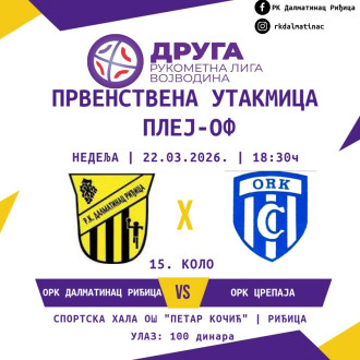Pred nama je 15. kolo Pleji-ofa Druge rukometne lige "Vojvodina", u kojem naš ORK Dalmatinac dočekuje ekipu ORK Crepaja. Trenutno se nalazimo na prvom mestu na tabeli, sa četiri boda prednosti u odnosu na prvog pratioca, i ulazimo u samu završnicu sezone gde je svaki bod presudan.