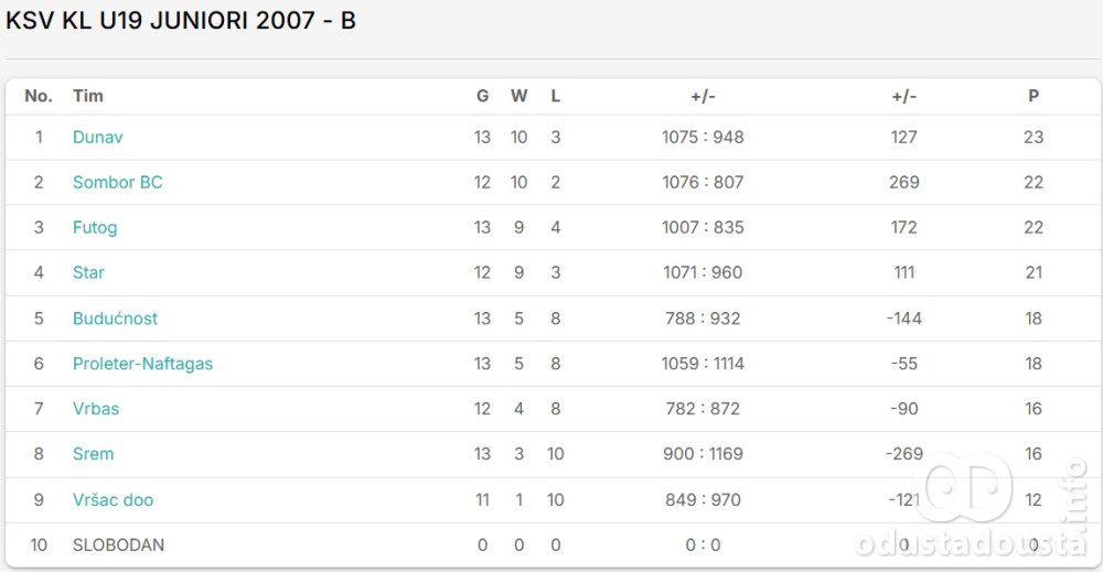 U 17. kolu grupe B Kvalitetne lige Košarkaškog saveza Vojvodine do 19 godina, juniorske selekcije KK Sombor Basketball City i KK Proleter-Naftagas iz Zrenjanina sastaće se u GH Mostonga, u ponedeljak, 23. marta 2026. godine. Početak duela je u 18:45 h.