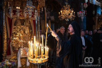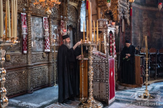 Bogosluženje je proteklo u prepoznatljivom svetogorskom poretku, uz pojanje koje čuva viševekovnu tradiciju pravoslavnog istoka. Prisutni vernici, kojih je ove godine bilo u velikom broju, imali su priliku da u jedinstvenom ambijentu Svete Gore dočekaju ovaj veliki praznik.