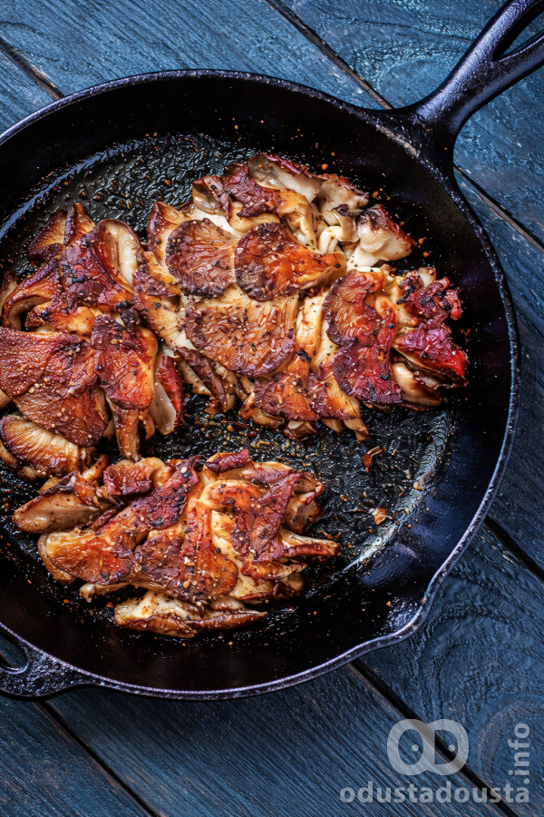 3. Grilovanje: Dobro zagrejte tiganj (po mogućstvu gril tiganj) ili roštilj. Pecite bukovače 3–4 minuta sa svake strane, dok ne postanu zlatno-smeđe i blago hrskave na ivicama.