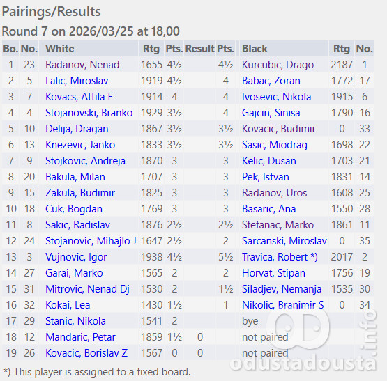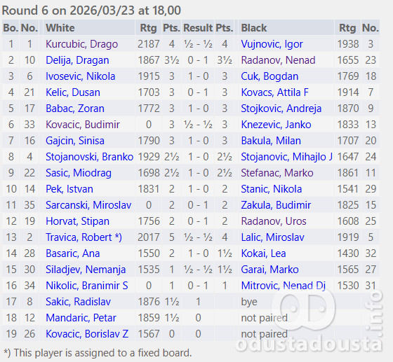 Šesto kolo rejting turnira 18. Sombor open donelo je