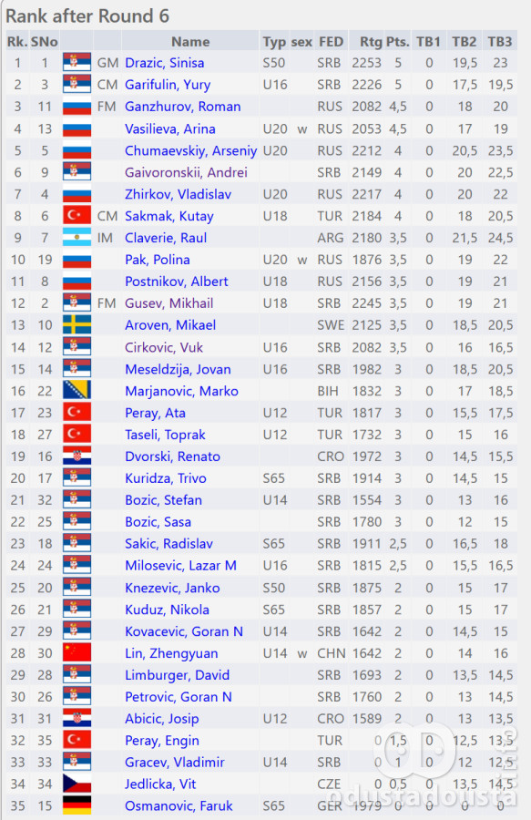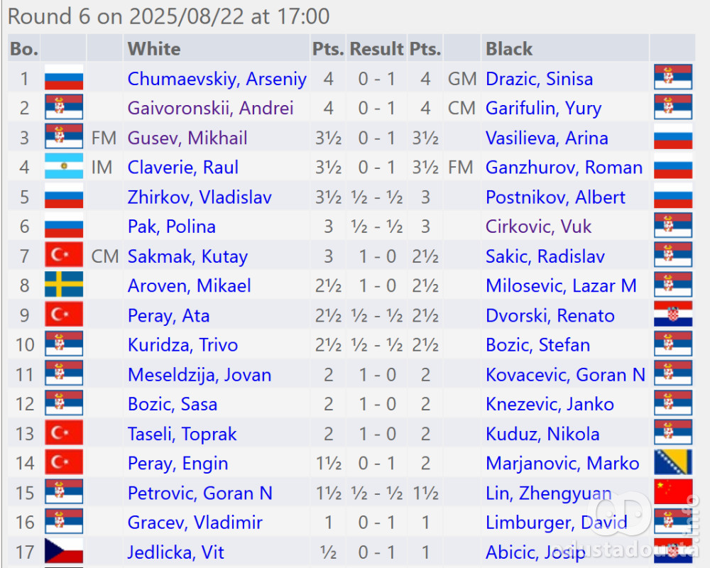 Tabela nakon 6. kola II međ. turnira "Apatin open - Liberland 2025."  4
