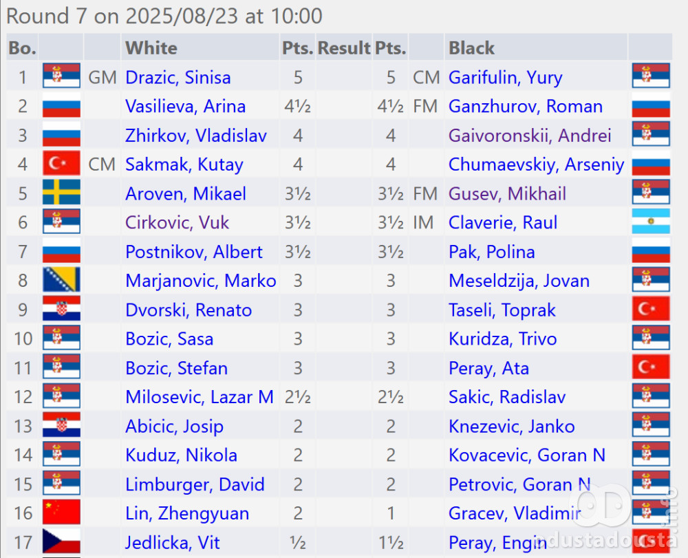 Vodeći vm Siniša Dražić odbio je napad Arseniya Chumaevskiyog i zadržao prvu poziciju, Yury Garifulin pokušaje Andreia Gaivoronskiiog, Arina Vasilieva srušila je planove branioca titule Mikhaila Guseva, a fm Roman Ganzhurov je imao sve odgovore na pretnje im Raula Claveriea.
