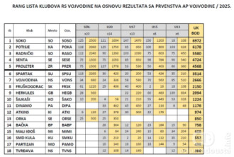 Rvački savez Vojvodine objavio je finalnu rang-listu za proteklu godinu, a rezultati potvrđuju apsolutnu dominaciju somborskih klubova. Na samom vrhu, kao neprikosnoveni lider pokrajine, našao se Rvački klub „Soko“, koji je svojim nastupima na prvenstvima osigurao titulu najuspešnijeg kolektiva.