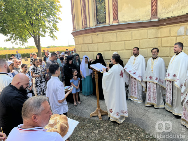 Danas u Somboru služena je liturgija pod hladom mladih hrastova u porti manastira Arhiđakona Stefana.