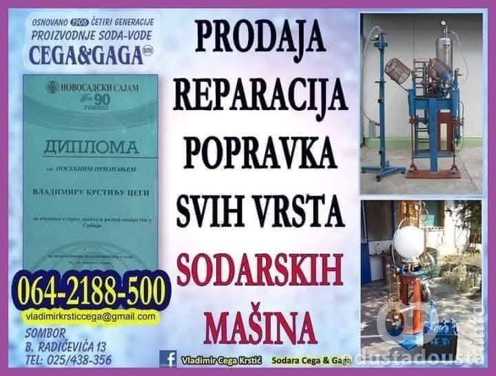 SODARA Cega i Gaga jedina je sodara koja restaurira, remontuje, obnavlja, popravlja i prodaje mašine za soda-vodu. Do sada je u našoj sodari reparirano 57 mašina za soda-vodu koje danas rade širom Srbije i republika bivše Jugoslavije, a mnoge će tek biti obnovljene i nastaviće da proizvode vrhunsku soda-vodu.