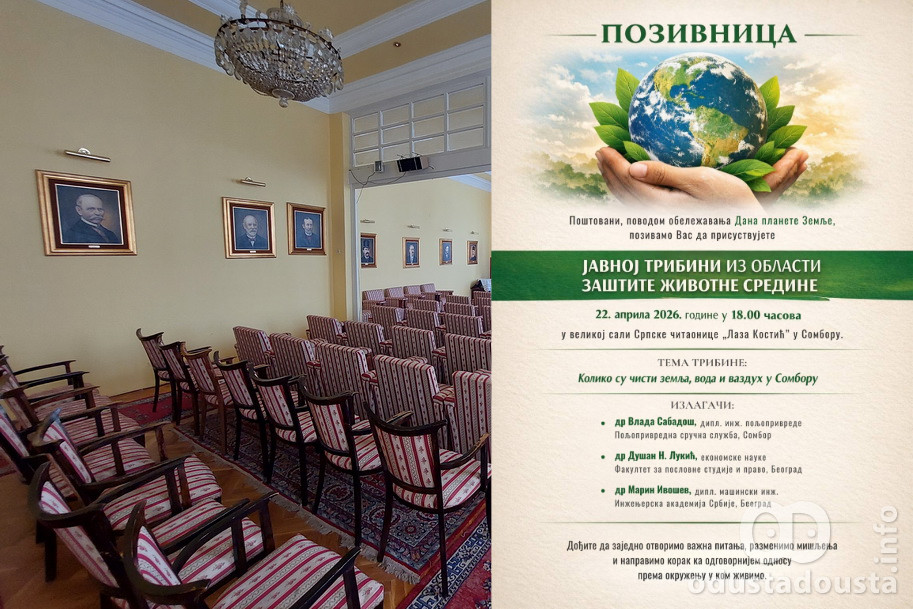 Povodom obeležavanja Dana planete Zemlje, u prepunoj sali Srpske čitaonice „Laza Kostić“ održana je javna tribina pod nazivom „Koliko su čisti zemlja, voda i vazduh u Somboru“.