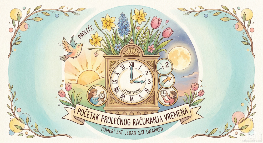 Danas, u nedelju 29. marta 2026. godine, zvanično je počelo letnje računanje vremena. Kazaljke na časovnicima su u 2.00 sata ujutru pomerene jedan sat unapred, na 3.00 sata, što znači da smo spavali sat vremena kraće, ali ćemo od danas uživati u dužem dnevnom svetlu.