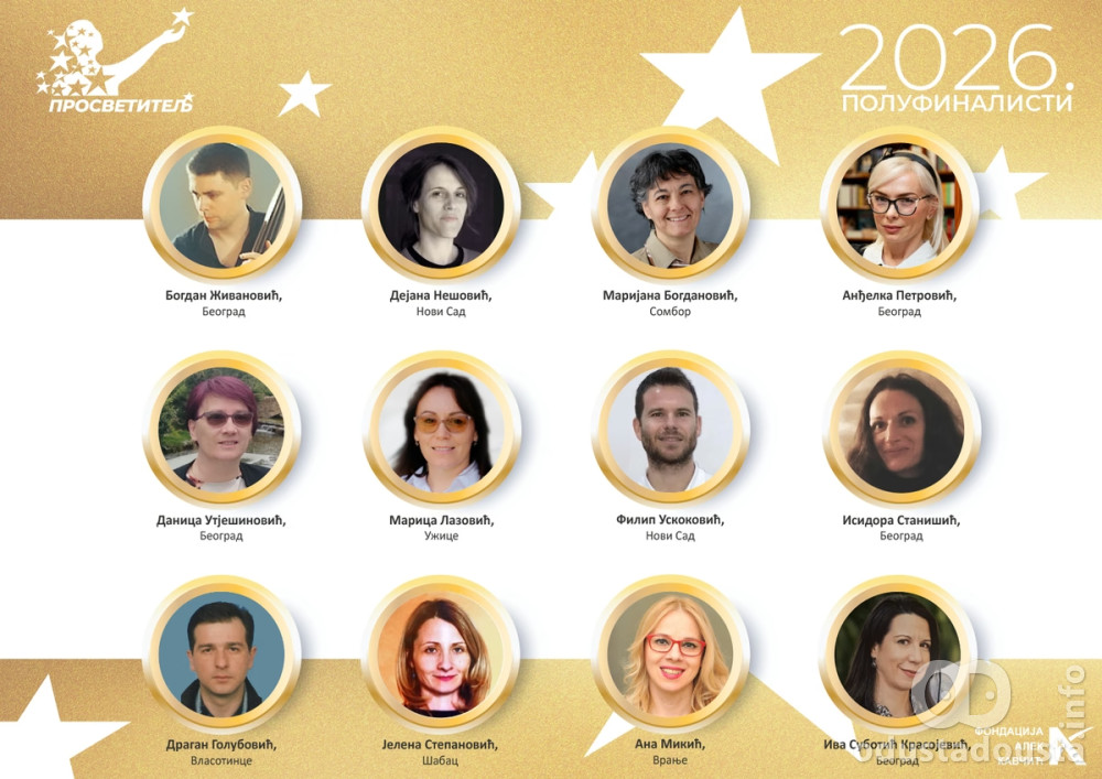 Renomirani žiri nastavničke nagrade „Prosvetitelj“ za 2026. godinu odabrao je 12 polufinalista koji su se izdvojili svojim radom, stručnošću i uticajem na zajednicu. Poseban uspeh ostvarila je naša sugrađanka i koleginica, Marijana Bogdanović, profesorka elektrogrupe predmeta u Srednjoj tehničkoj školi u Somboru, koja se plasirala u samu završnicu ovog prestižnog takmičenja.