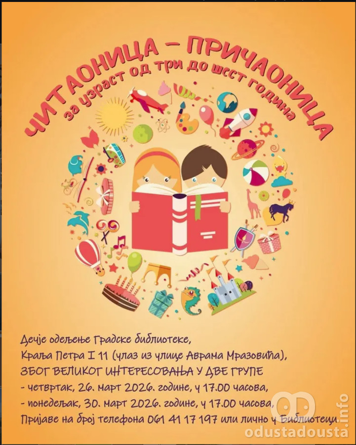 Radionica je namenjena deci uzrasta od tri do šest godina, a cilj je da se kroz igru i priču razvija ljubav prema čitanju od najranijeg doba.